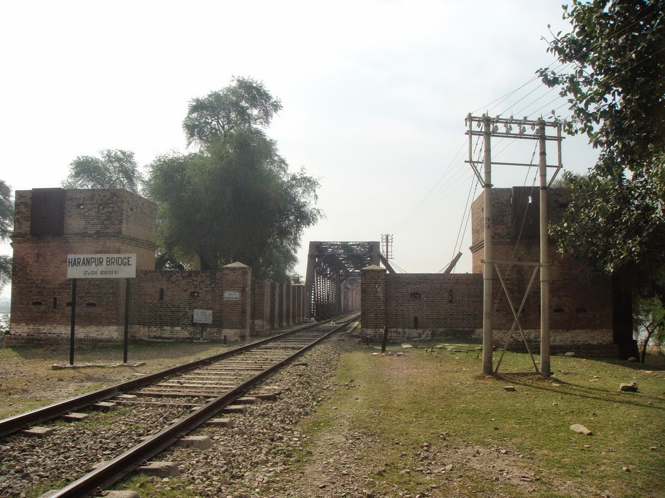 The railway bridge at Haranpur is a beautiful example of old iron railway bridges constructed during the British era. It was likely built in the 1890s and underwent renovation or repair in 1936. The bridge is also known as Victoria Bridge. It is a remarkable piece of engineering and well worth seeing. The scenery is equally captivating, with the River Jhelum flowing beneath it.
