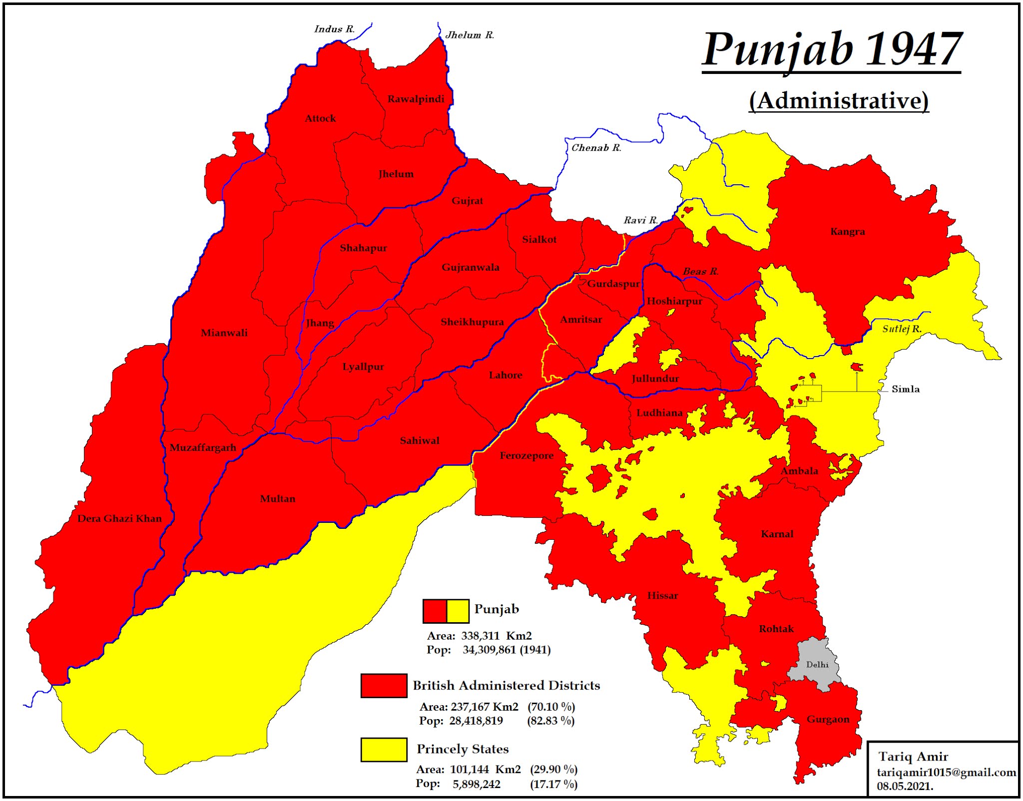 The above map illustrates the territories that various powers ceded to the British before they eventually became part of Pakistan in 1947. From this, we can see that Punjab, Kashmir, Gilgit-Baltistan, and parts of Khyber Pakhtunkhwa were acquired from the Sikhs and Dogras, while Sindh was conquered from the Talpur dynasty. To the west, Afghanistan was forced to cede large areas to the British. Meanwhile, states such as Bahawalpur and Kalat remained semi-independent, ruled by local Muslim dynasties, but with British India recognized as the paramount authority.