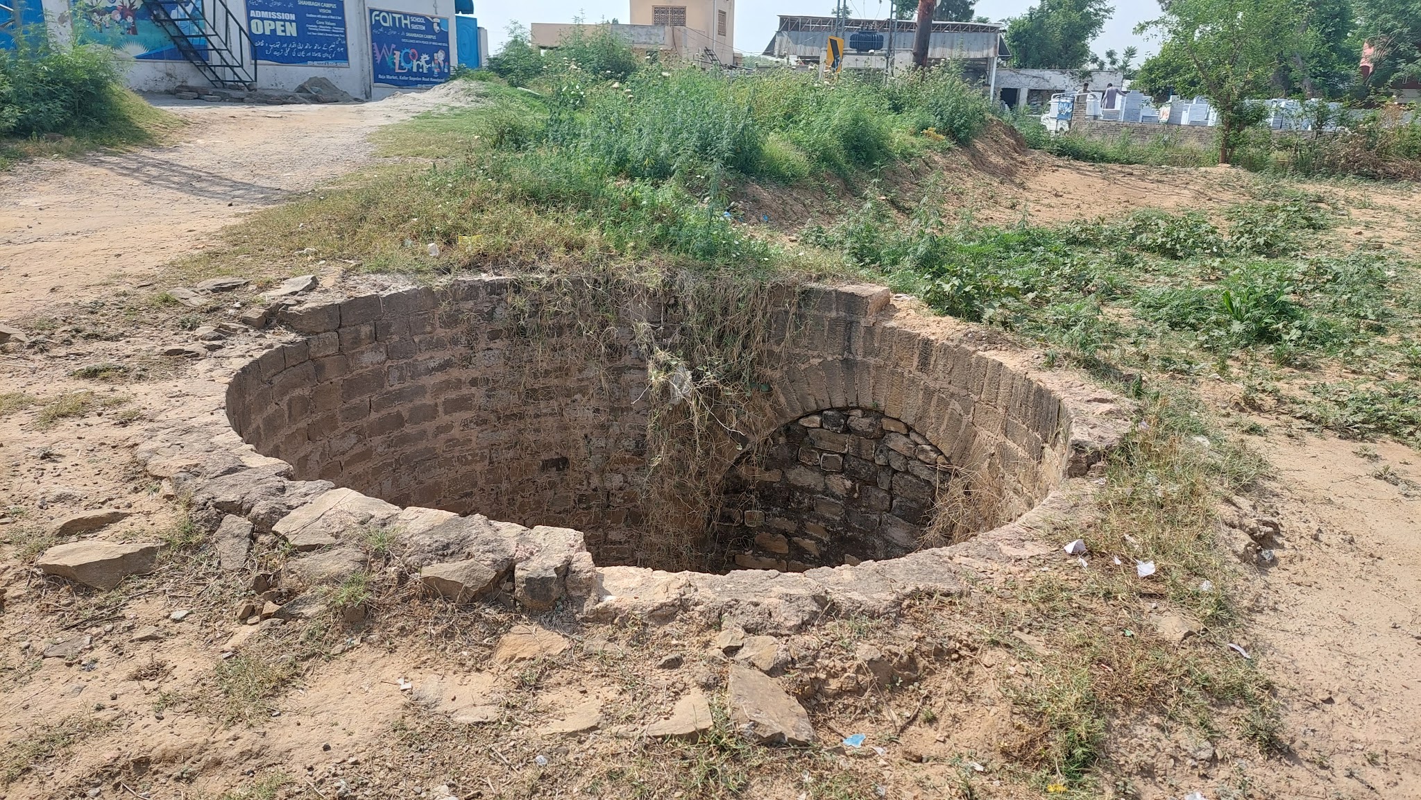 One such baoli that we have lost recently is the Shah Bagh Baoli. It was situated 10 km east of Rawat, on the Rawat–Kallar Syedan road. (Please refer to the map given at the end of this article for the exact location.) The nearby town is called Shah Bagh, but the locality itself is known as Raja Market. The baoli stood quite close to the road, though it was not easily visible.