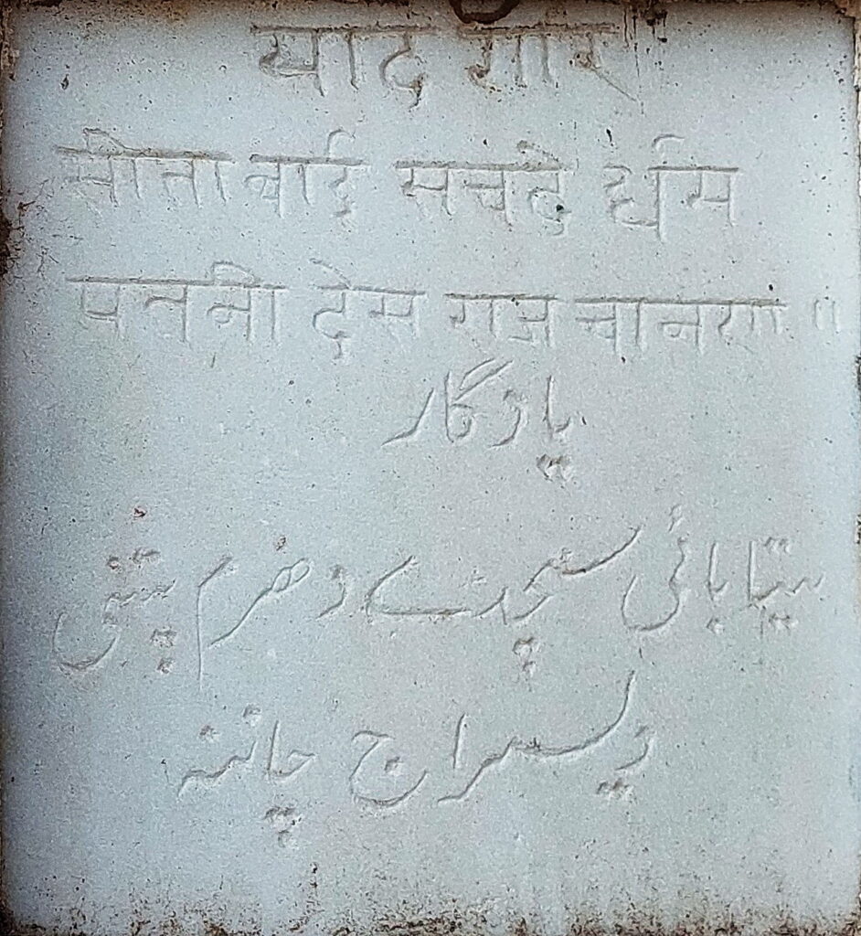 Important note: In the Urdu inscription, two names are given at the lower corners of the plaque. On the right, it appears to read Matab Ram Chandna, and on the left, Chamba Ram Chandna. These do not seem to be common Hindu names, so I cannot confirm their accuracy.