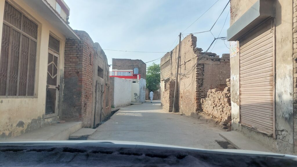 This temple is located in a village called Vijh in the district of Sargodha, old Shahpur. Vijh is situated approximately 20 kms to the west of Sargodha. It is a big village, bounded by a canal and surrounded by rich farmlands, settled under the Jhelum Canal Colony project. The village itself seems to be an old settlement. The temple is located at 32° 3’56.09″N, 72°25’29.15″, in the southern part of the village, close to its old bazar. ٰ I visited this temple on March 24, 2026, it was a pleasant day.